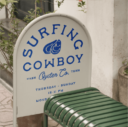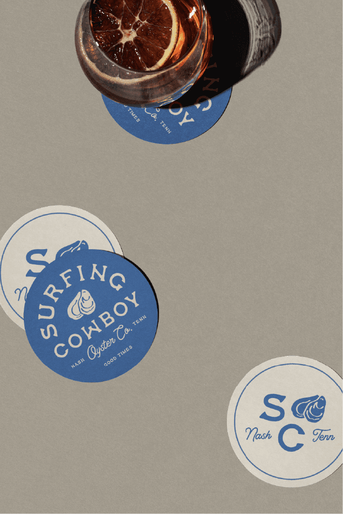 We created a visual identity that blends playful retro elements with a modern feel. The client wanted to combine a classic surf aesthetic, while still tied to Nashville’s southern roots. Some elements we really love are the vintage script, inspired by a cowboy lasso, and hand illustrated oyster engravings.